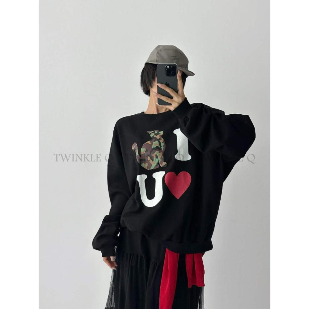 🎀TwinkleQ韓國代購BUY好物-預購✈️正韓🇰🇷 大學t 迷彩貓咪 字母 愛心 休閒上衣 寬鬆 長袖上衣 大學踢