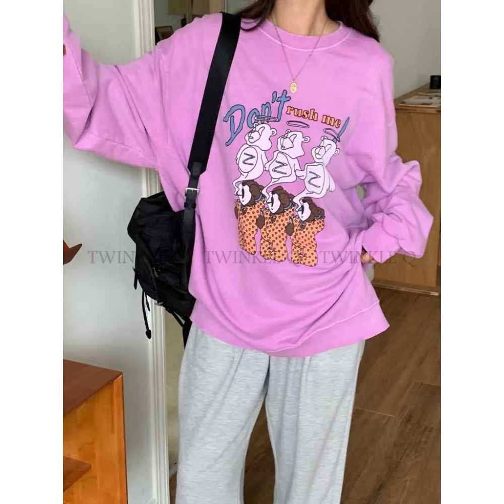 🎀TwinkleQ韓國代購BUY好物-預購✈️正韓🇰🇷 大學t 熊熊 卡通圖案 長袖t恤 水洗t 寬鬆 印花 大學踢