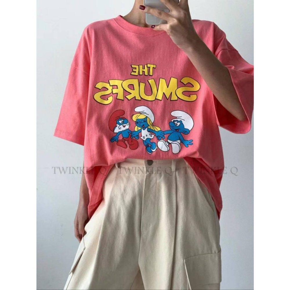 🎀 Twinkle Q韓國代購BUY好物-預購✈️正韓🇰🇷 短袖t恤 藍色小精靈 寬鬆上衣 印花 短袖上衣 韓國t恤