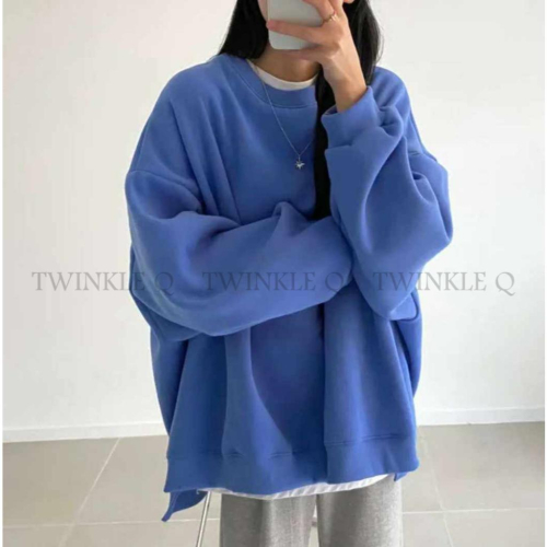 🎀TwinkleQ韓國代購BUY好物-預購✈️正韓🇰🇷 大學t 素色 百搭 加絨加厚 寬鬆版型 長袖t恤 大學踢
