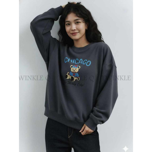 🎀TwinkleQ韓國代購BUY好物-預購✈️正韓🇰🇷 大學t 小熊 字母印花 刷毛 寬鬆版型 卡通圖案 長t 大學踢