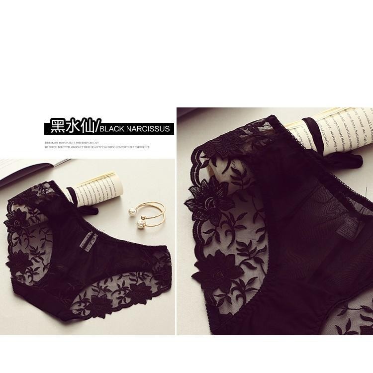 【林柏】日系 冰絲 性感 網紗 刺繡 蕾絲 透明 女三角內褲 女內褲