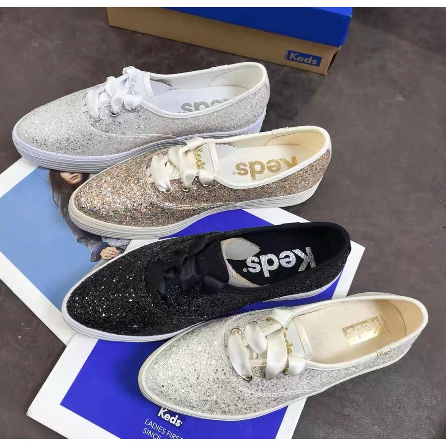 如果你也正在尋找那雙既夢幻又隨性的婚鞋,不妨看看 Keds 與 Kate Spade 最近再次聯名推出的婚嫁系列帆布鞋,設計師在鞋上加上了不少浪漫的元素,像是水晶、珍珠與閃粉,絕對能輕鬆搭配任何婚紗。