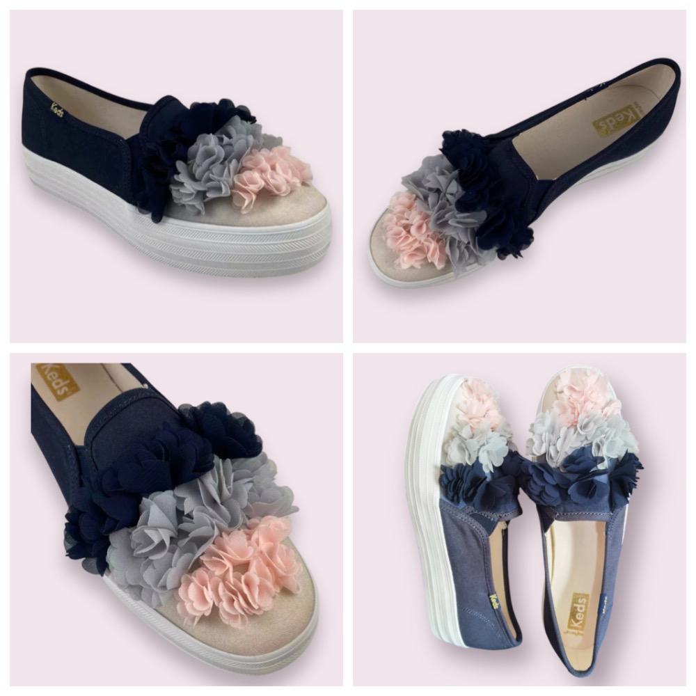 如果你也正在尋找那雙既夢幻又隨性的婚鞋,不妨看看 Keds 與 Kate Spade 最近再次聯名推出的婚嫁系列帆布鞋,設計師在鞋上加上了不少浪漫的元素,像是水晶、珍珠與閃粉,絕對能輕鬆搭配任何婚紗。