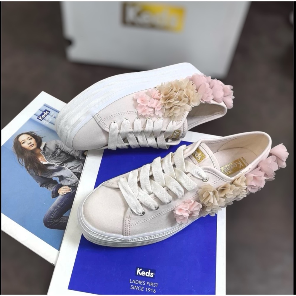 如果你也正在尋找那雙既夢幻又隨性的婚鞋,不妨看看 Keds 與 Kate Spade 最近再次聯名推出的婚嫁系列帆布鞋,設計師在鞋上加上了不少浪漫的元素,像是水晶、珍珠與閃粉,絕對能輕鬆搭配任何婚紗。