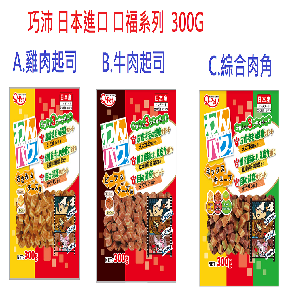 Q-Pet 日本巧沛 口福系列 綜合肉角 300g 大包裝好滿足 軟嫩口感 老犬也可吃 狗狗零食