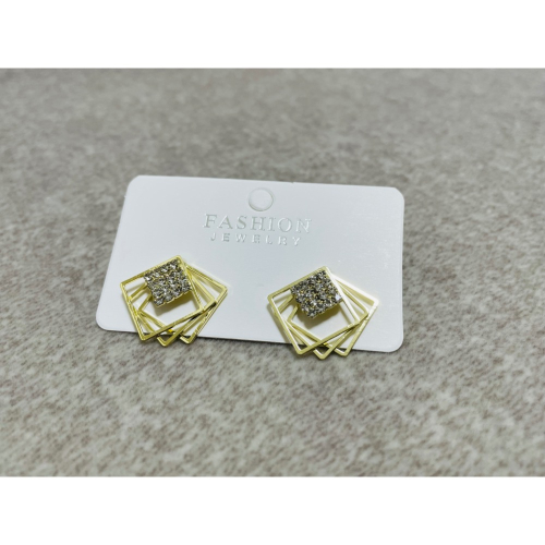 《台灣現貨》多方形水鑽耳環(非夾式)