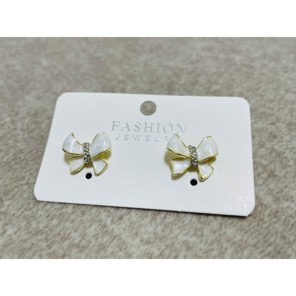 《台灣現貨》氣質白色蝴蝶結耳環(非夾式)