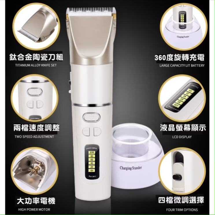 珍珠白專業理髮器,6小時,靜音安全鈦合金+陶瓷刀頭,液晶 快速,成人兒童剃頭刀;生日禮物贈品禮品獎品