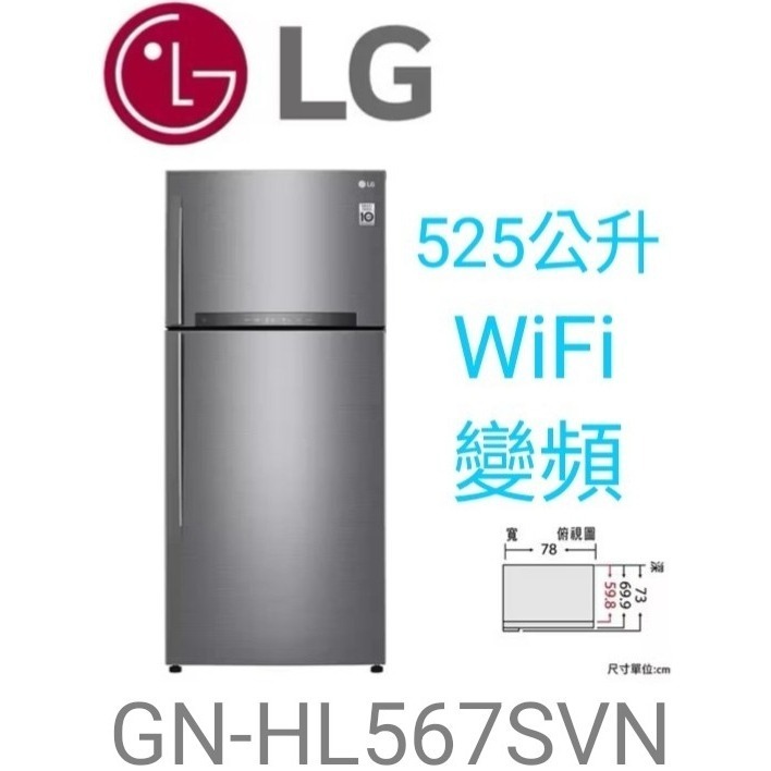 LG樂金 變頻 冰箱 GN-HL567SVN 525公升,WiFi 雙門 星辰銀 電冰箱 500L