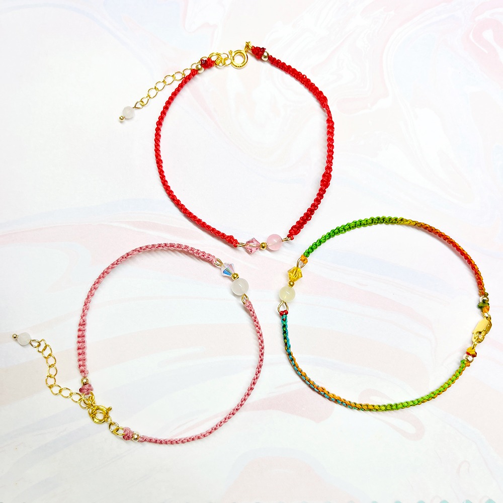 商品名稱: 【客製化】925純銀+k金 水晶編織幸福手鍊 法國奶奶系列 多色選