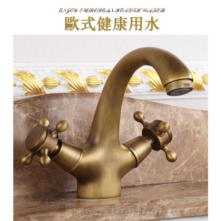 台灣現貨 銅歐式風格 冷熱共用 金廚房水龍頭水龍頭高壓拉出彈簧雙出口廚房洗碗盆水槽冷水龍頭