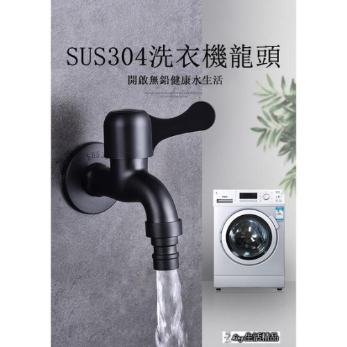 台灣現貨 洗衣機水龍頭黑色洗衣機龍頭304不銹鋼 不鏽鋼 單冷 單熱 快開水龍頭4分水嘴水龍頭
