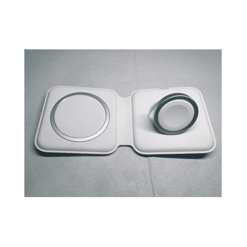 MagSafe 雙充電器能方便快捷地為相容的 iPhone、Apple Watch、適用於 AirPods 的無線充電盒,以及其他 Qi 認證的裝置進行充電。只要把裝置放在充電器上,就會開始進行穩定、高效率的充電。充電器還能折疊起來,到哪都方便攜帶。