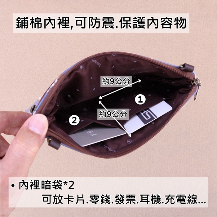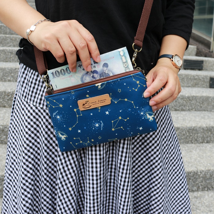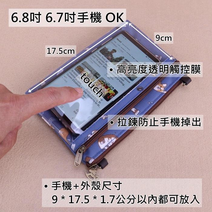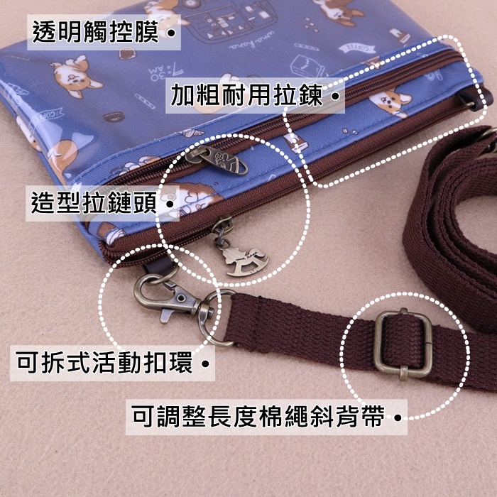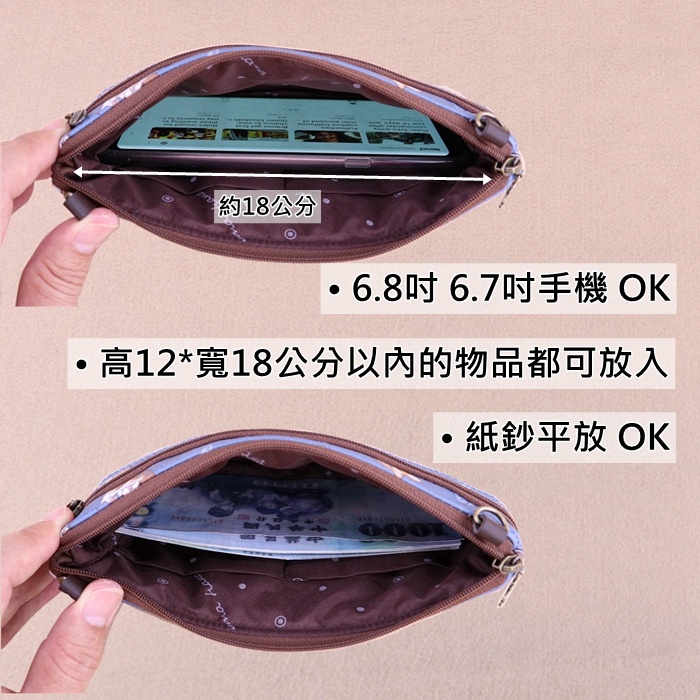 拉鍊式封口好拉耐用,適合6.8吋以下手機專用,安心拉鍊開關,可拆式活動調整型側背帶,方便調整至適合的長度。