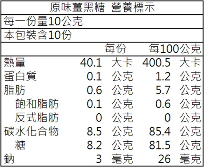 ▪成分:台灣本土黑糖、百年古法麥芽糖(糯米、小麥)、老薑、玄米油。