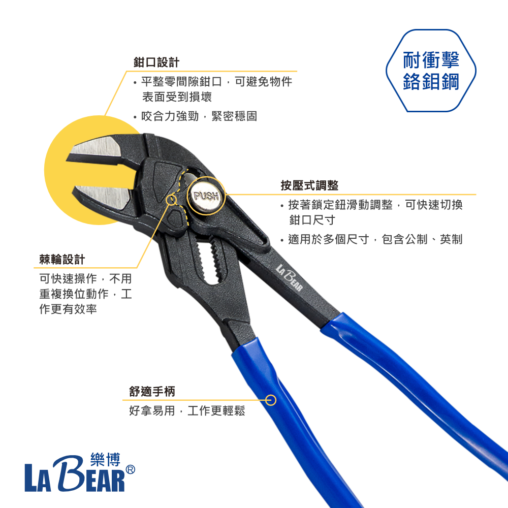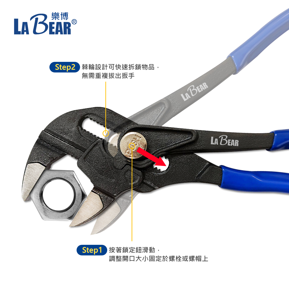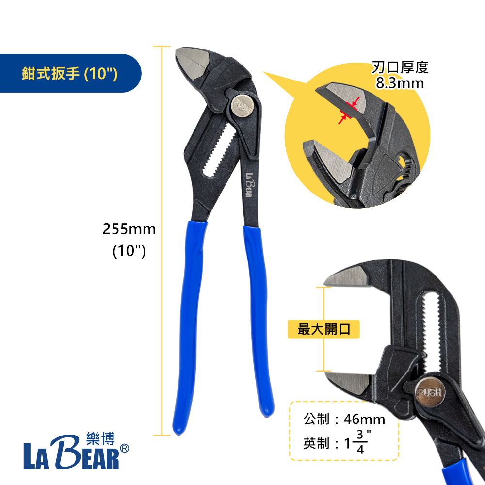 【LaBear】10吋 鉗式扳手 可調式 活動板手 水管鉗 多功能活動鉗 管鉗 管道鉗 魚嘴鉗 水龍頭安裝 台灣製