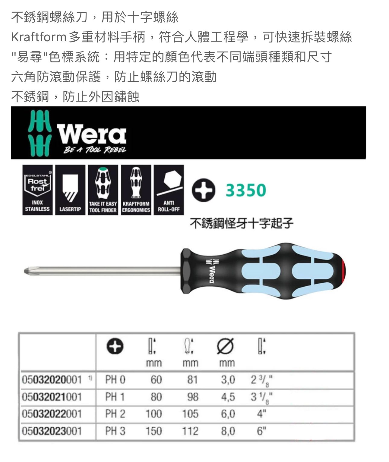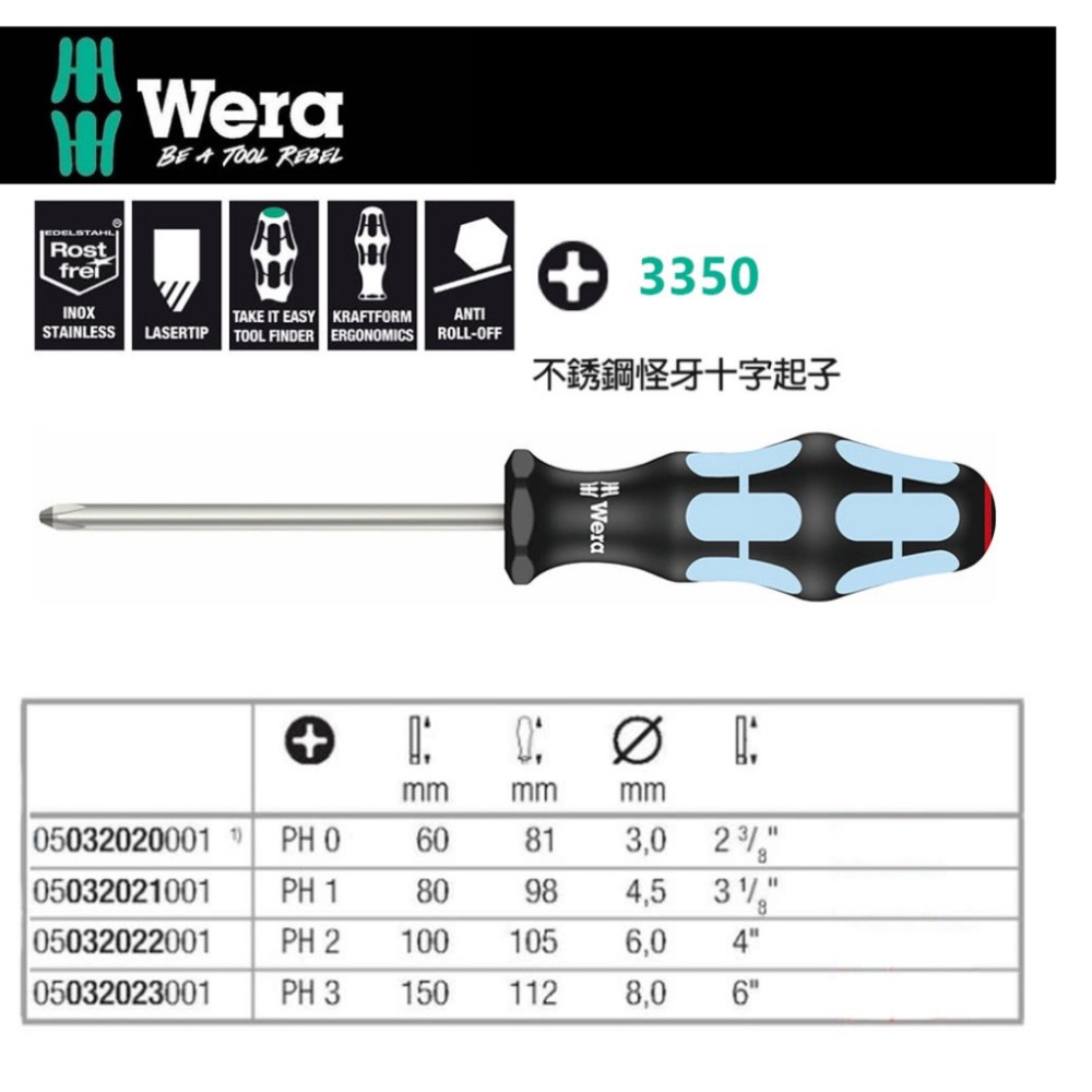 德國【WERA】不鏽鋼怪牙十字起子3350PH 螺絲起子 白鐵
