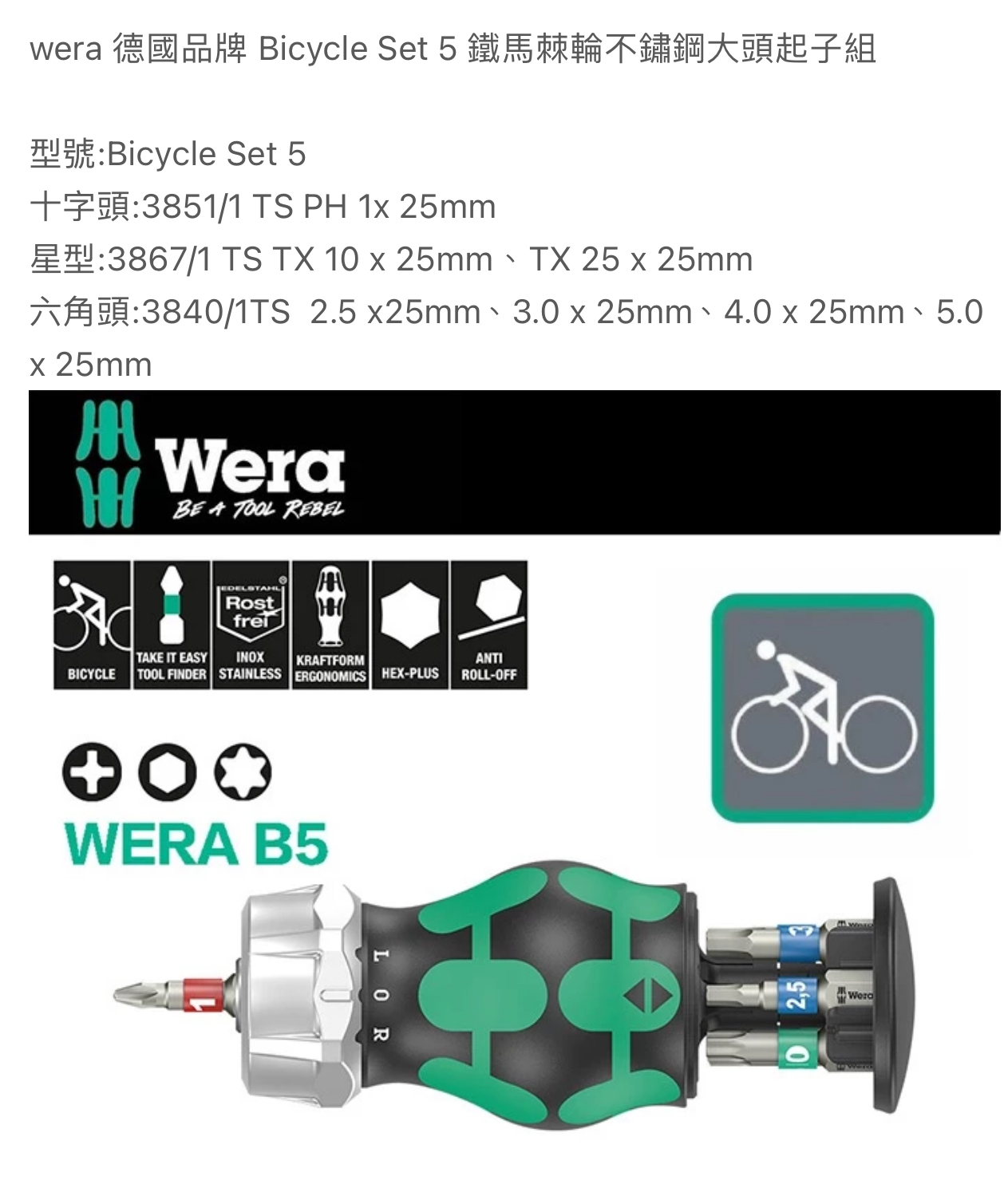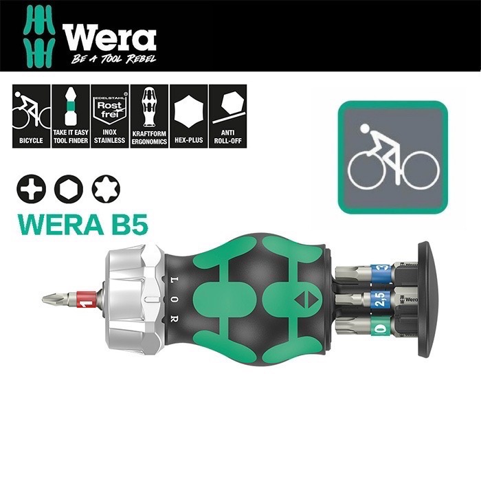 德國【WERA】Bicycle Set 5 鐵馬棘輪不鏽鋼大頭起子組