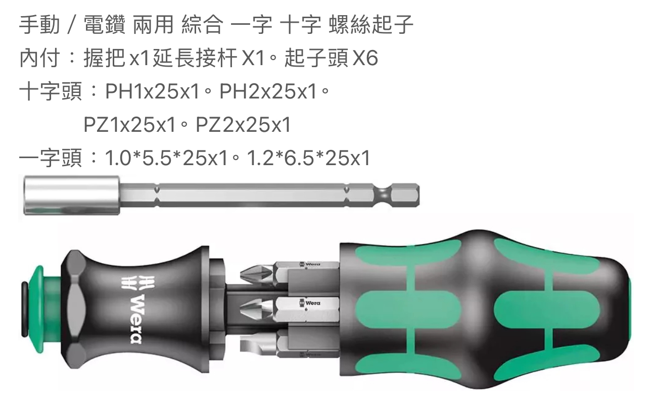 德國【WERA】頂級全方位6支起子組 KK-28 多功能起子組 內附起子頭 延長接桿 接桿也可在電動起子上使用