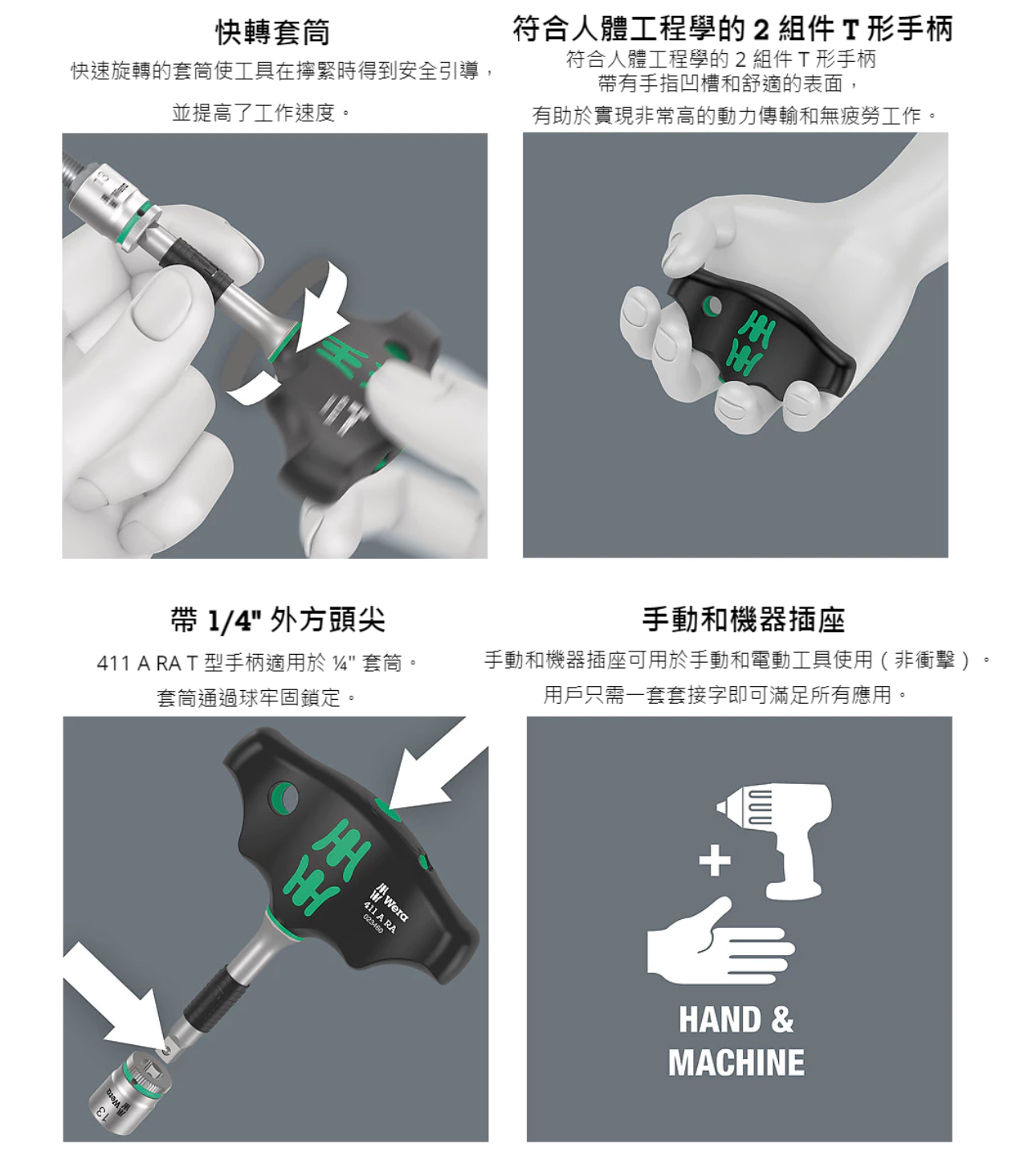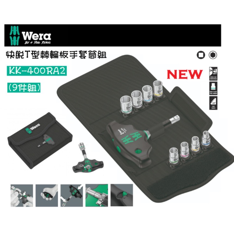 德國【WERA】KK-400RA2 快脫T型棘輪板手+套筒 9件組附帆布包 T型板手 棘輪 套筒組