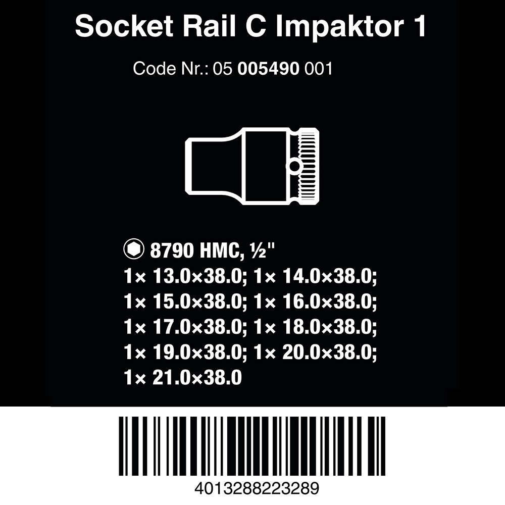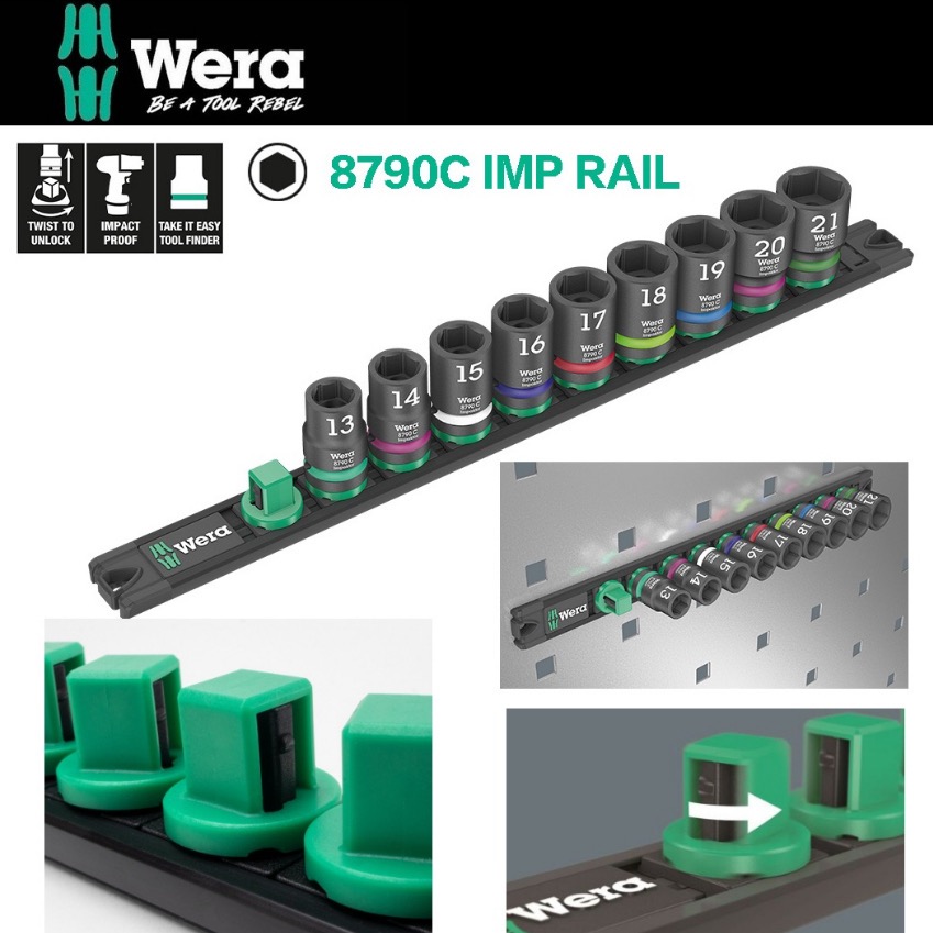 德國【WERA】四分 氣動短套筒9件組-附磁性收納條 8790C IMP RAIL