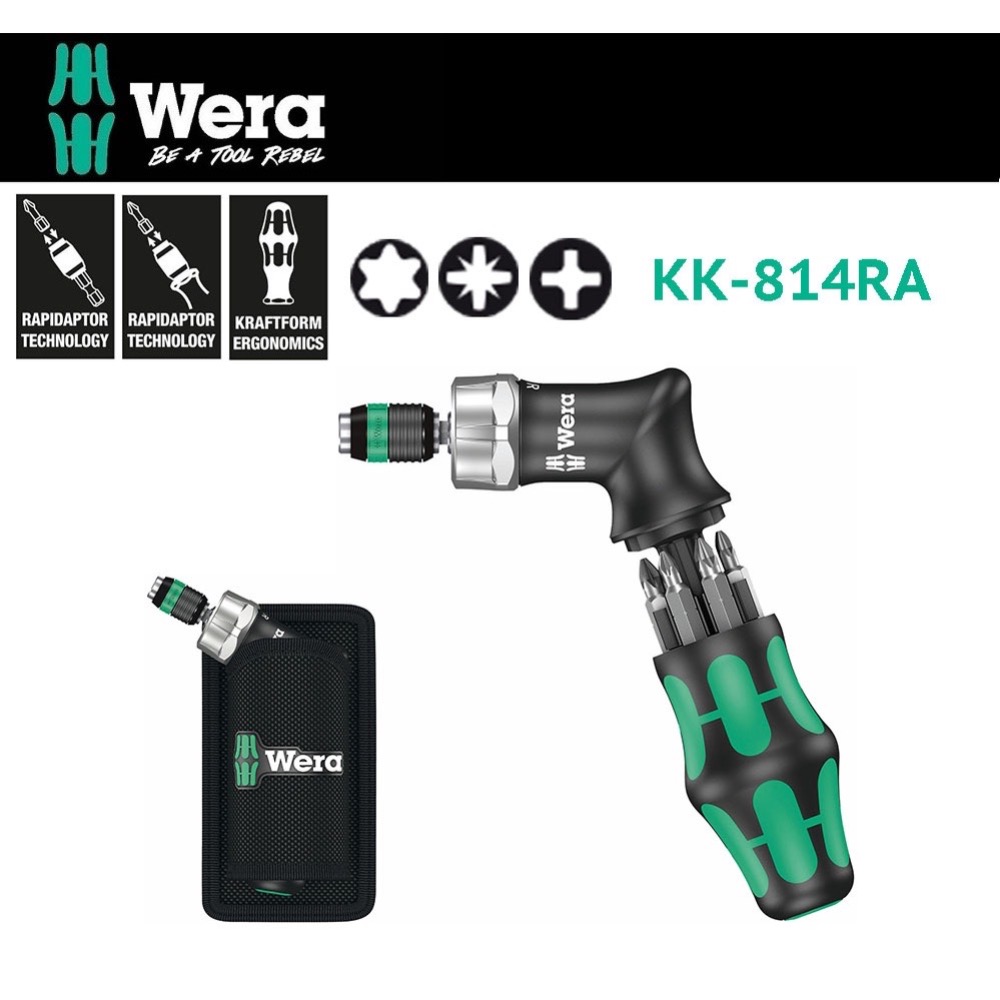 德國【WERA】頂級棘輪全方位槍型起子7件組KK-814RA 槍型起子 棘輪起子