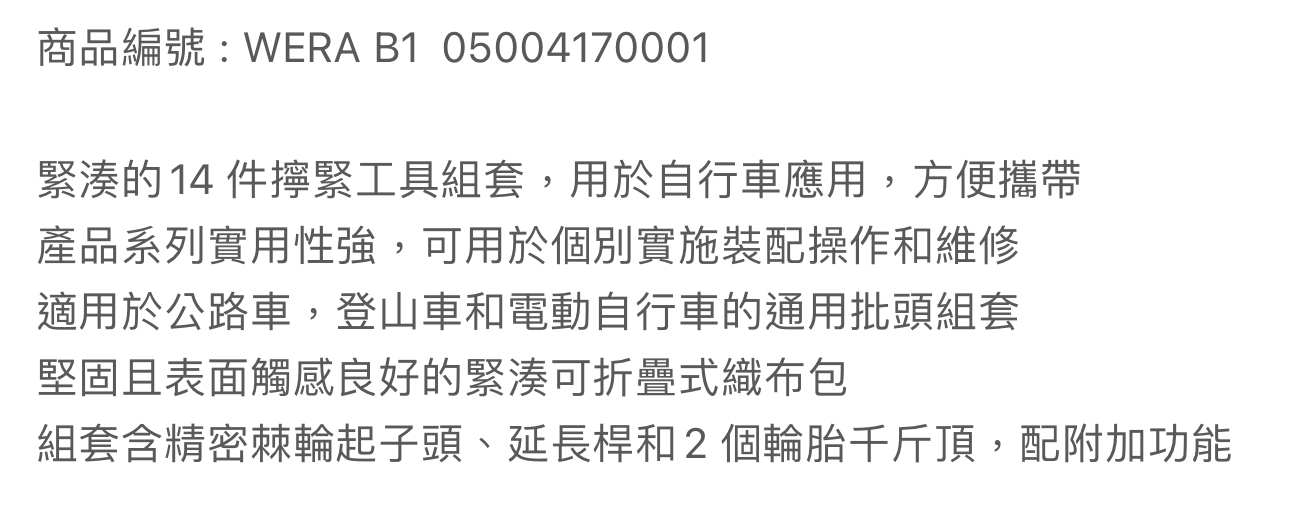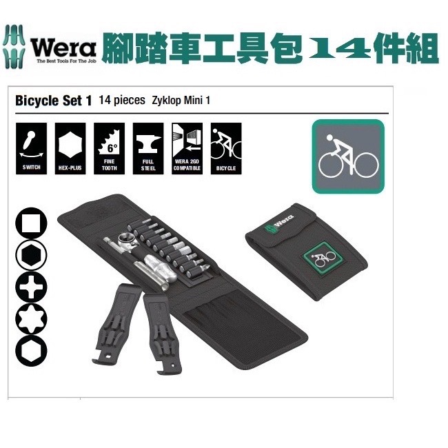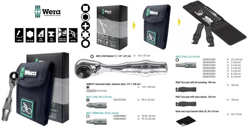 德國【WERA】 B1 鐵馬12件8001A+起子頭25mm+帆布包