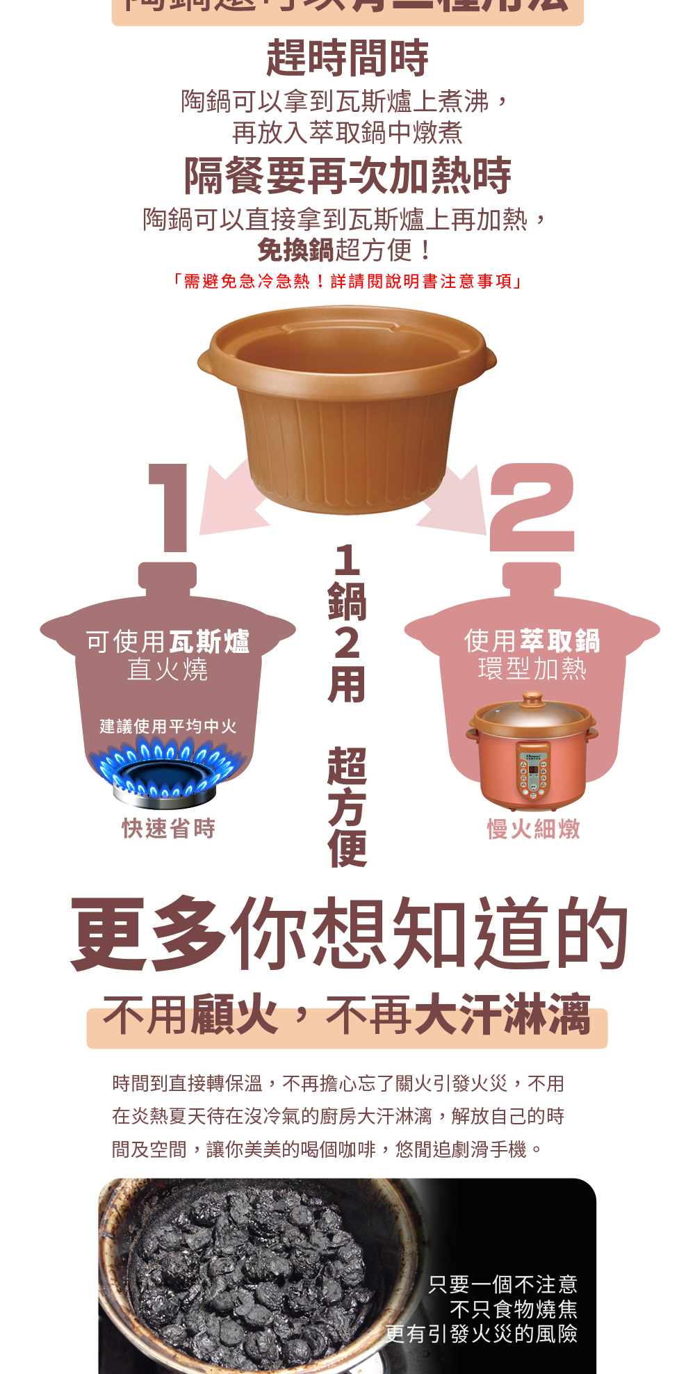 ✅遠紅外線陶鍋,可直火加熱,一鍋兩用超方便