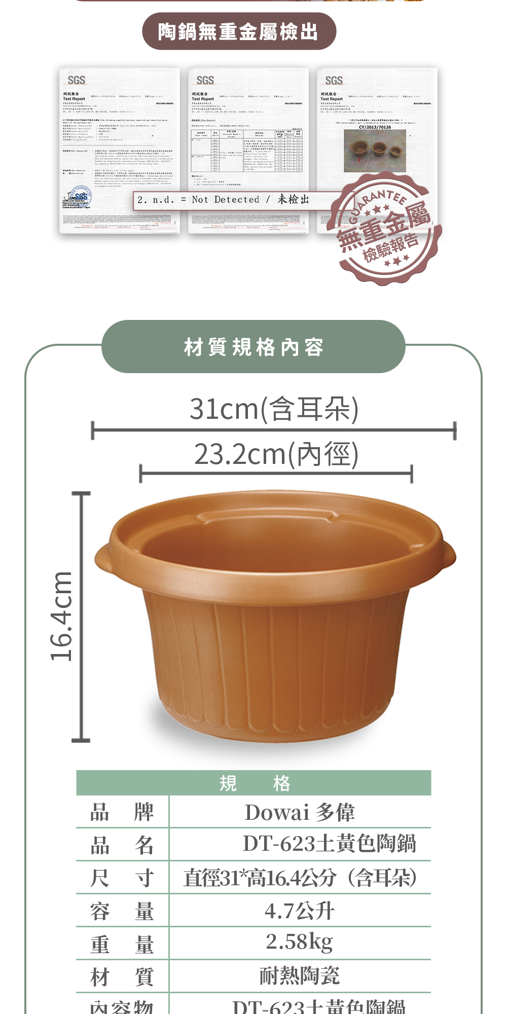 【Dowai多偉官方授權】 多偉 4.7L台灣製 遠紅外線 可直火陶瓷內鍋 防溢款 適用多偉燉鍋DT-623有開發票