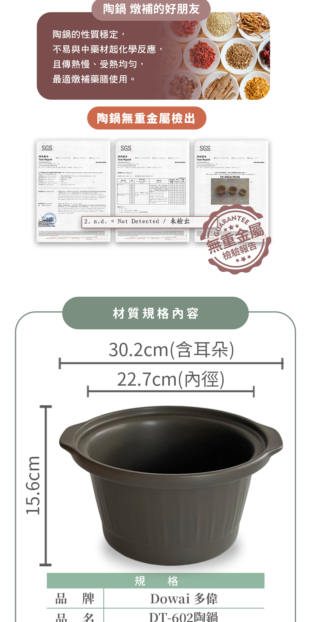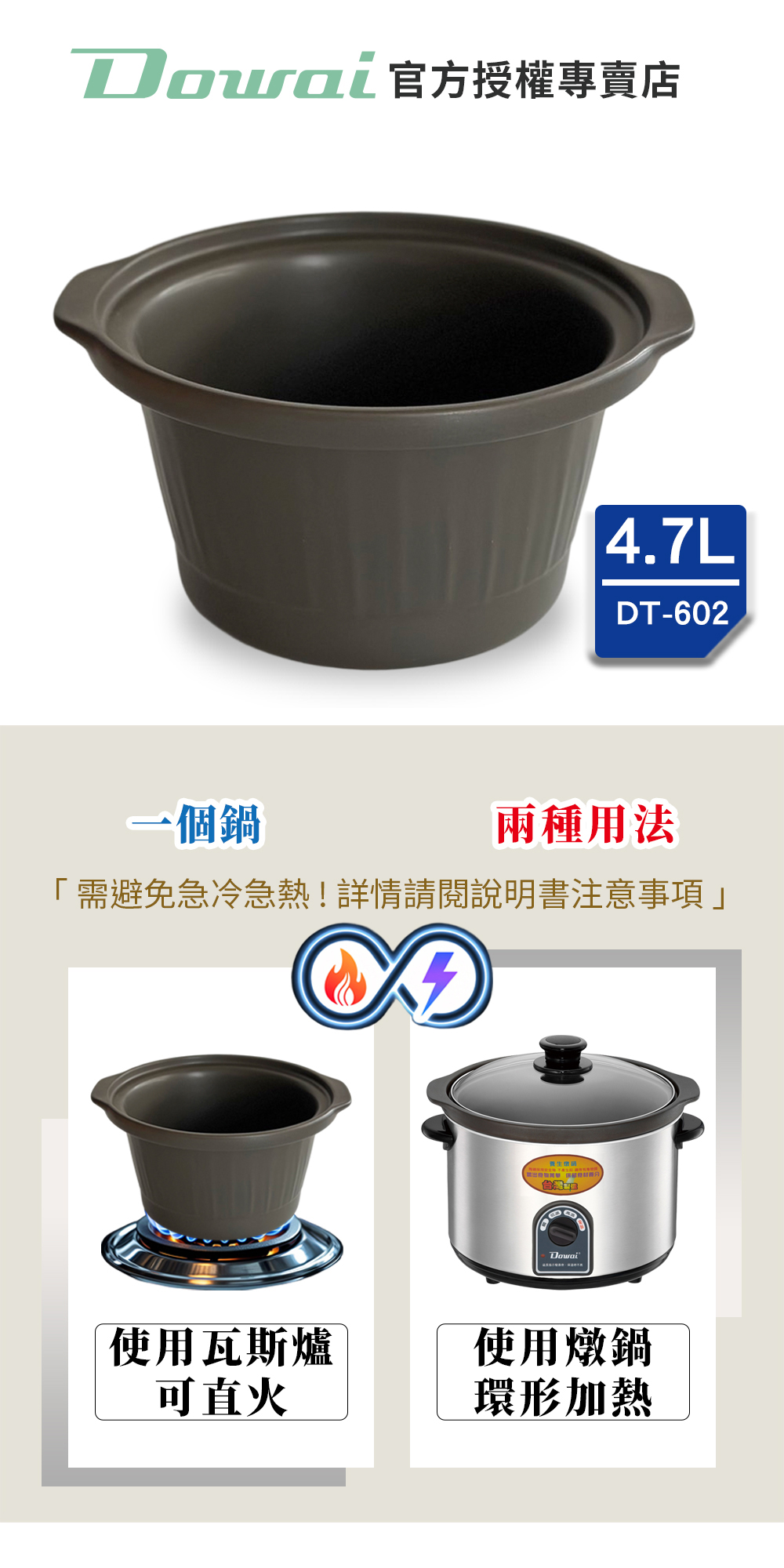 【Dowai多偉官方授權專賣店】Dowai 多偉 4.7L台灣製遠紅外線可直火陶瓷內鍋 適用燉鍋DT-602 有開發票