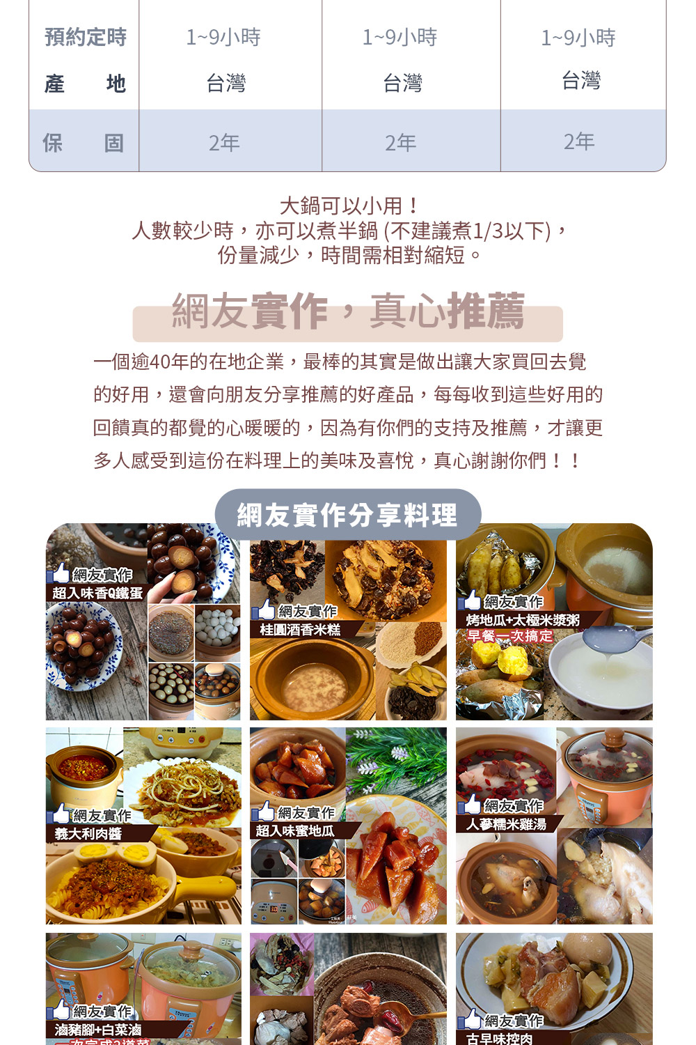 (保固範圍:主機保固2年;陶鍋、玻璃蓋及其他配件不在保固範圍內)