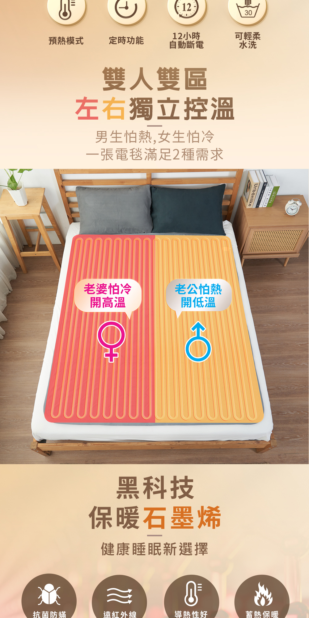 電毯新革命來了!【石墨烯】+【左右調溫】+【除蟎除濕】三效合一!