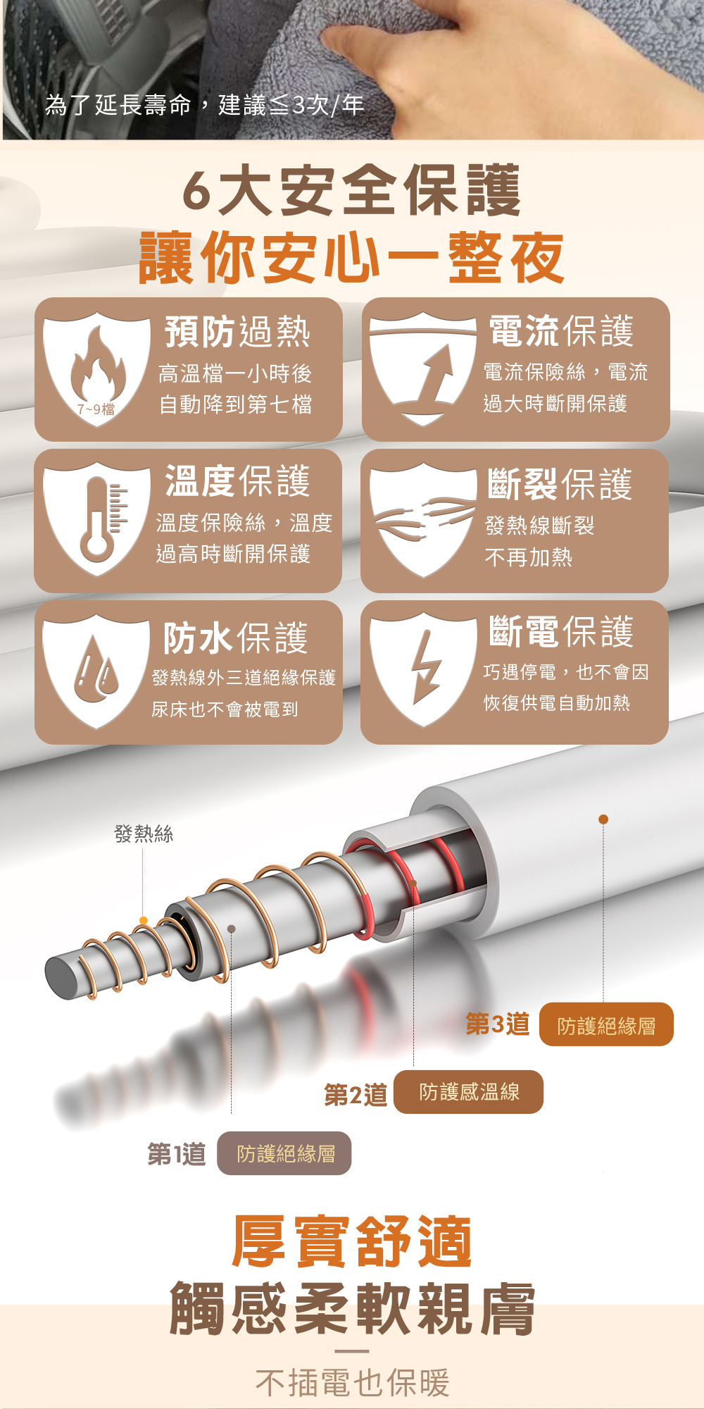 ✅安全把關!三道發熱線保護,尿床也不怕會漏電!