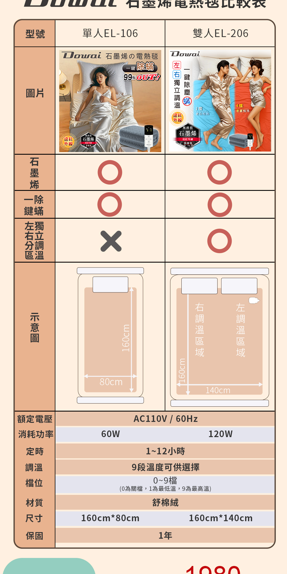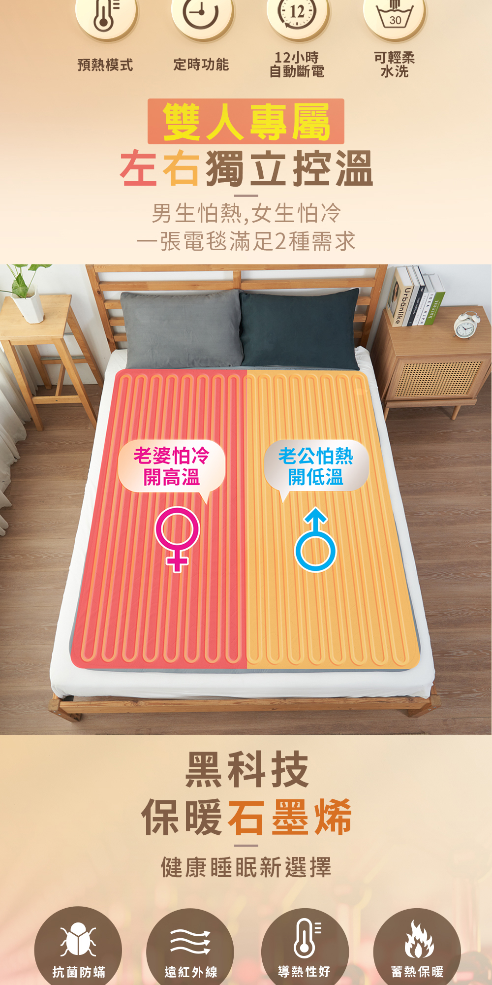 電毯新革命來了!【石墨烯】+【左右調溫】+【除蟎除濕】三效合一!