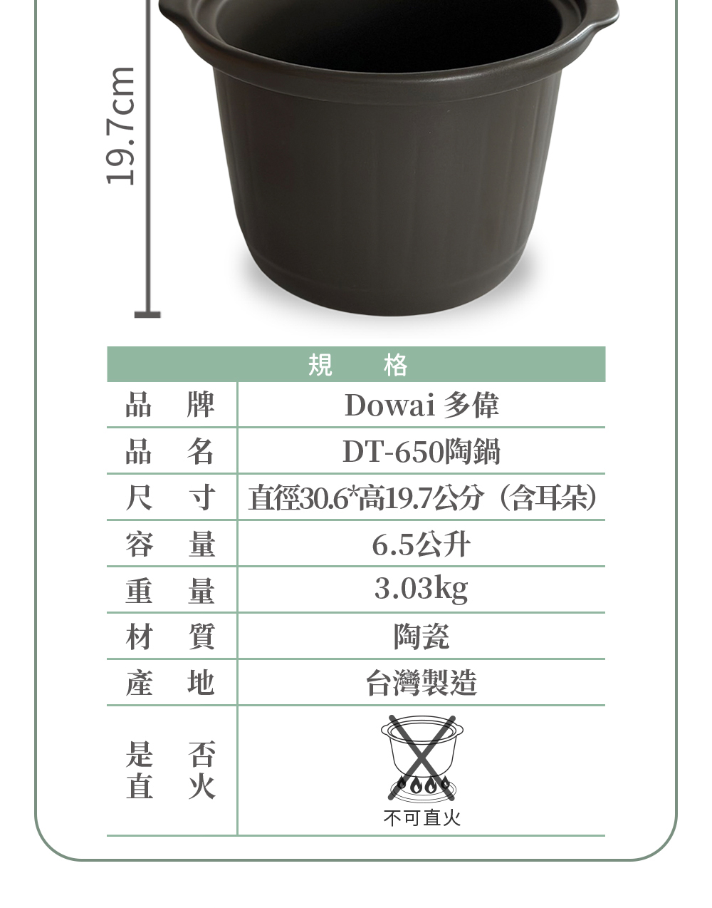 【Dowai多偉官方授權專賣店】Dowai 多偉 6.5L台灣製陶瓷內鍋 適用燉鍋DT-650 有開發票