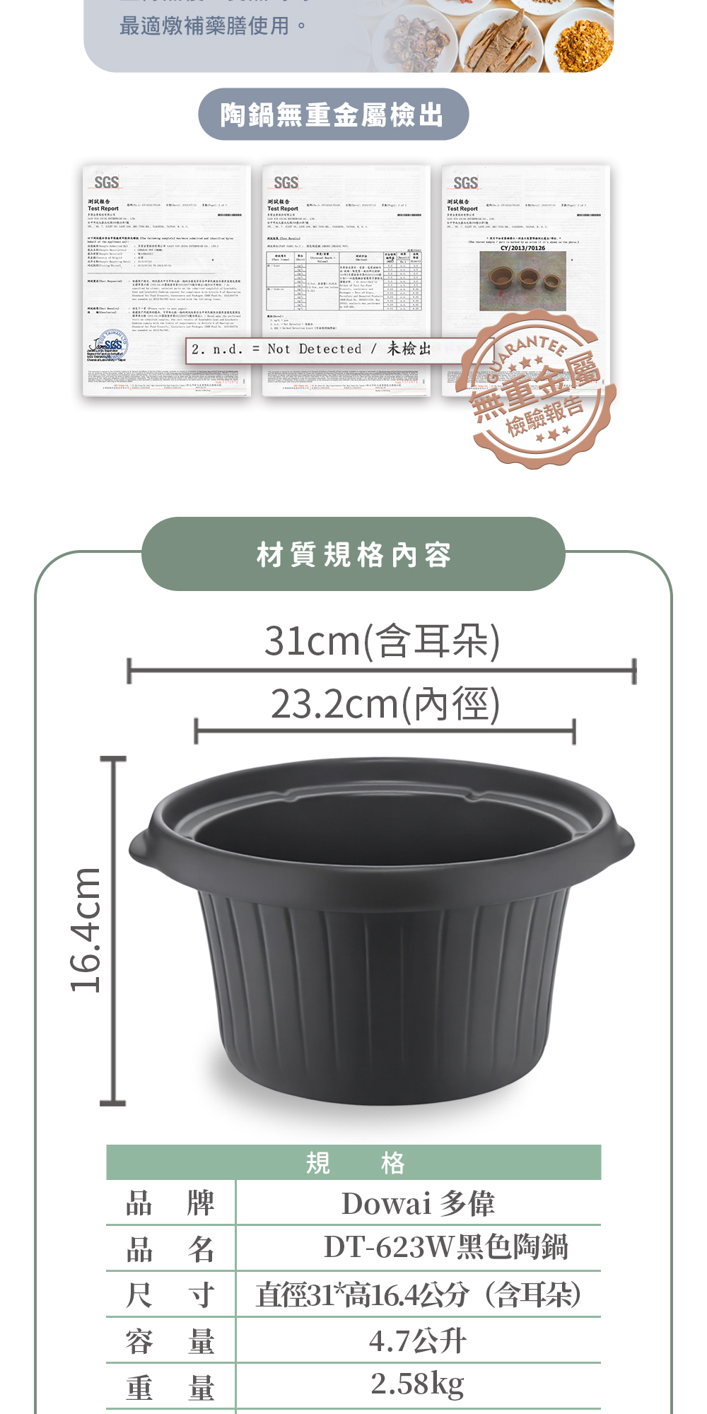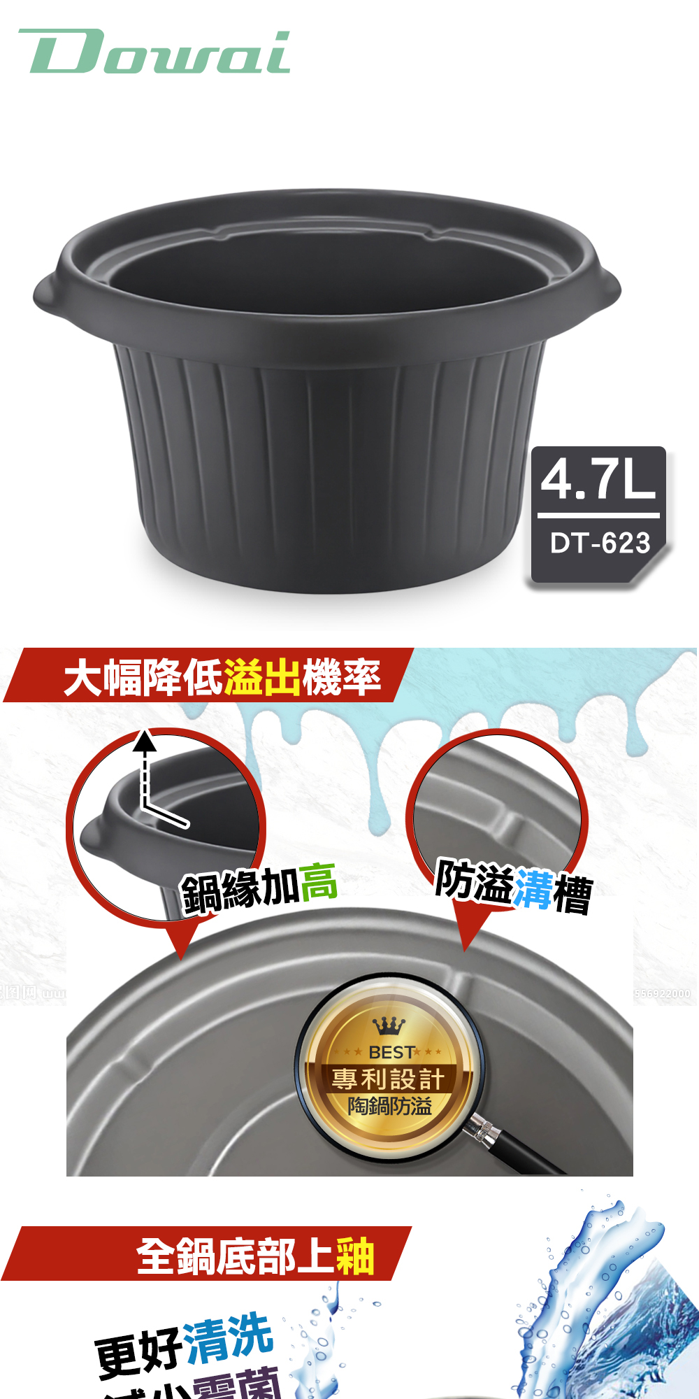 【Dowai多偉官方授權】 多偉 4.7L台灣製 遠紅外線 可直火陶瓷內鍋 防溢款 適用多偉燉鍋DT-623有開發票