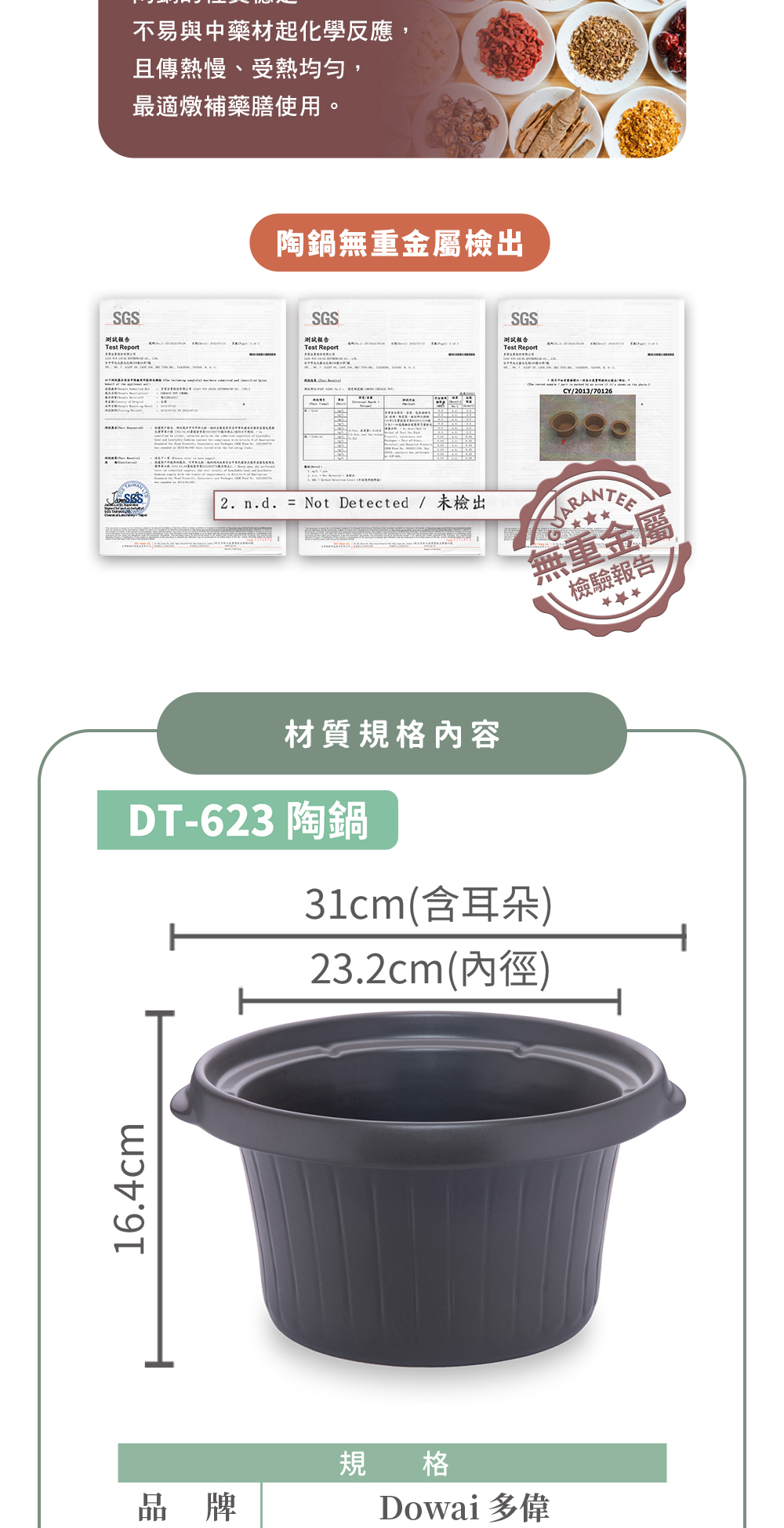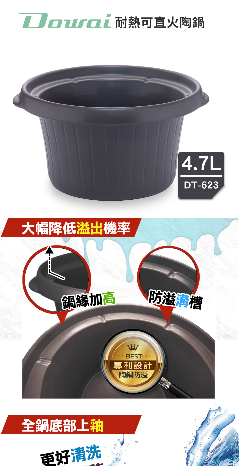 【Dowai多偉官方授權】 多偉 4.7L台灣製 遠紅外線 可直火耐熱陶瓷內鍋 防溢款 適用多偉燉鍋DT-623