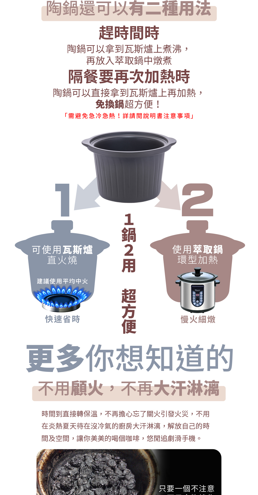 ✅遠紅外線陶鍋,可直火加熱,一鍋兩便