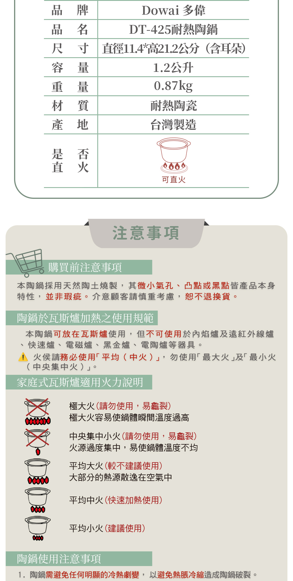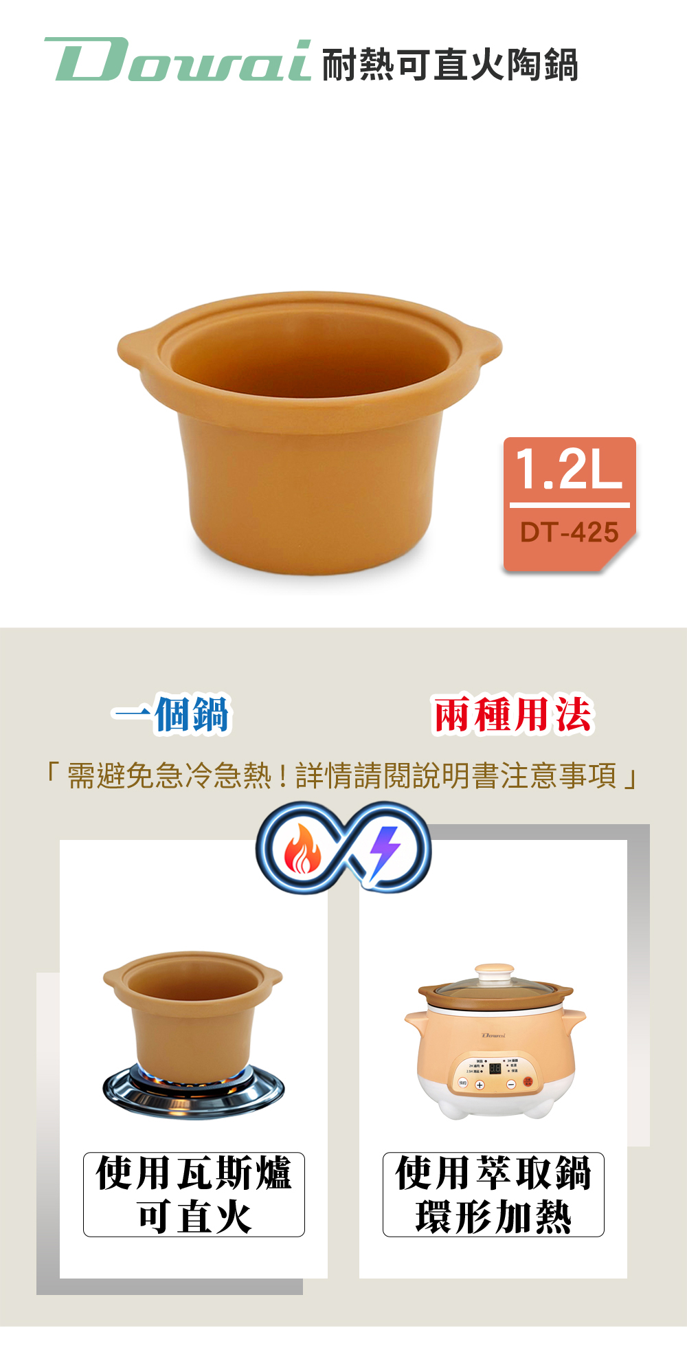 【Dowai多偉官方授權專賣店】 多偉 1.2L台灣製 遠紅外線 可直火耐熱陶瓷內鍋 適用多偉燉鍋DT-425
