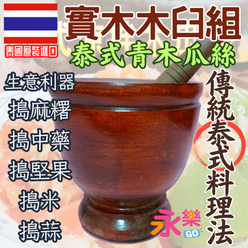 我們家主廚j小編"曾經在高雄大遠百駐點販售泰式青木瓜絲,使用此組臼來製作涼拌青木瓜絲販售,當時受到櫃姐與遊客的熱烈歡迎喔~新北樂華夜市非常有名的排隊青木瓜絲也用此泰國木臼製作涼拌青木瓜絲。