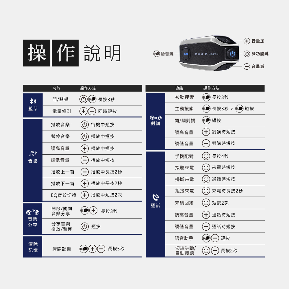 【Philo飛樂】Jazz5 全混音|長距離 安全帽藍芽對講耳機 官方原廠直送