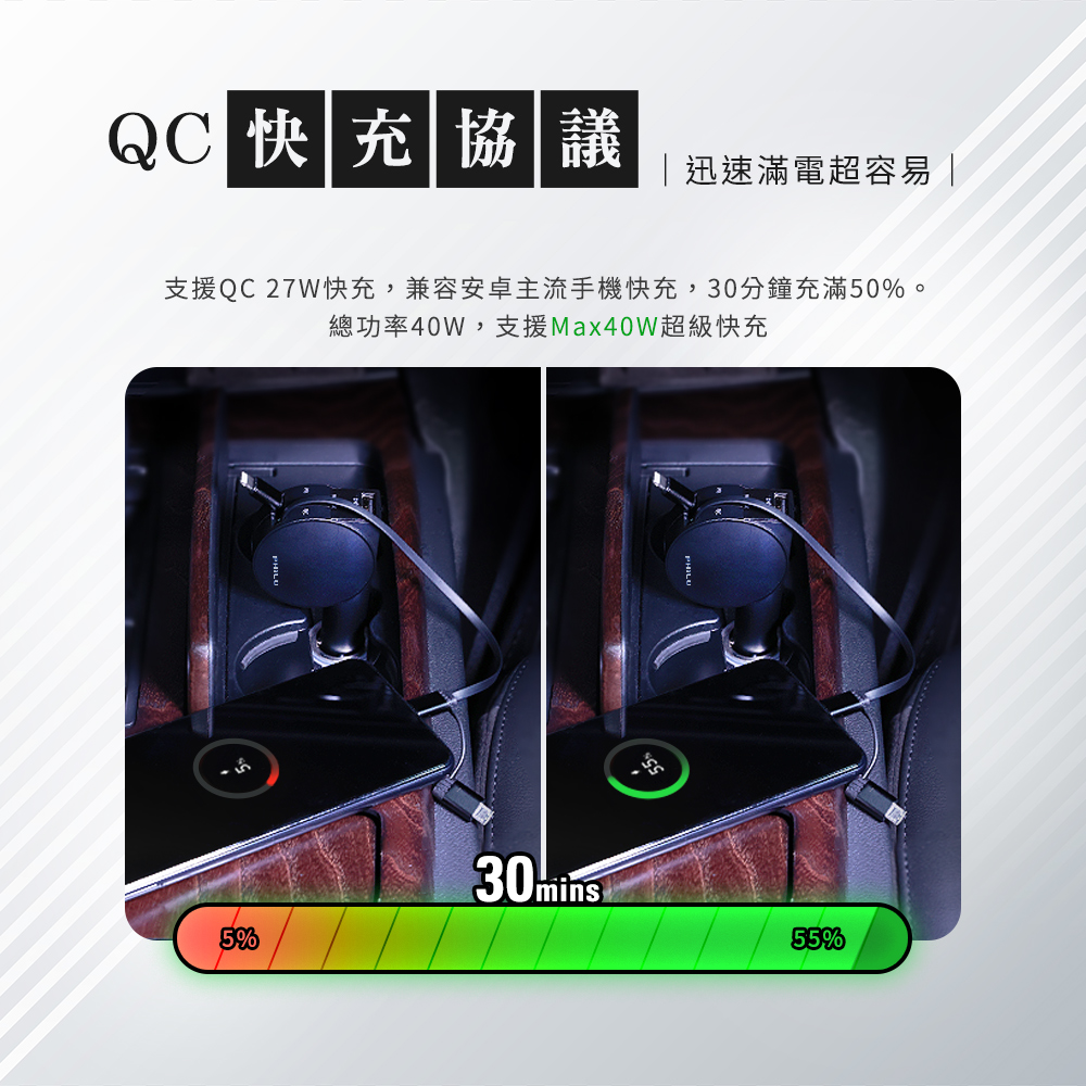 ● 支援QC 27W快充,兼容安卓主流手機快充,30分鐘充滿50%。總功率40W,支援Max40W超級快充