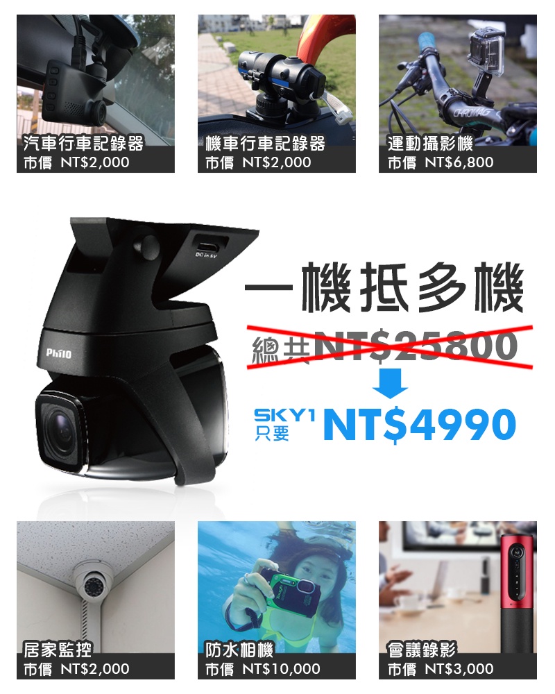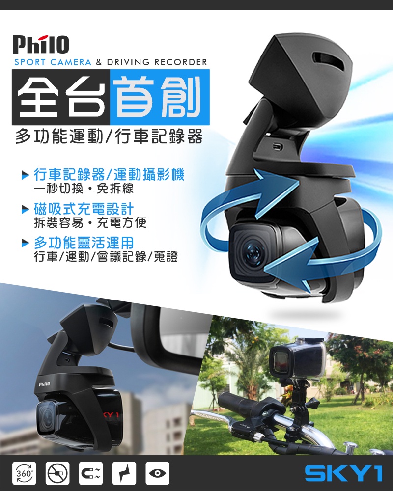 【Philo飛樂】SKY1 多功能運動行車紀錄器 官方原廠直送〔送16G記憶卡〕