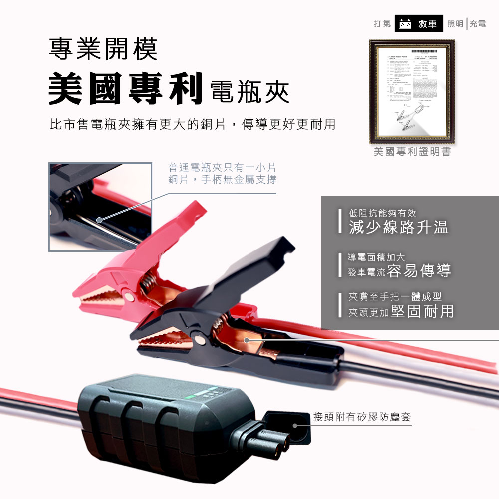● 使用美國專利電瓶夾,相較一般電瓶夾擁有更大的銅片,傳導更好更耐用