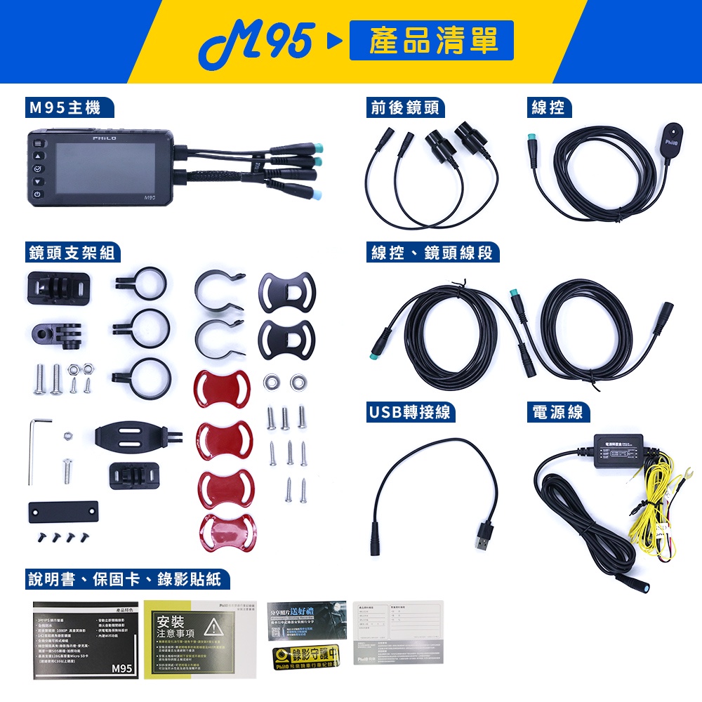 【Philo飛樂】海神M95 全防水 前後雙鏡頭機車行車紀錄器 官方原廠直送〔送64G記憶卡〕