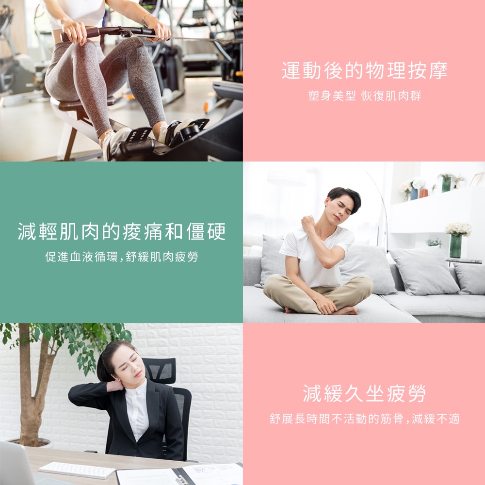 ● 給勞累的你,物理按摩、減輕肌肉痠痛及僵硬、減緩疲勞