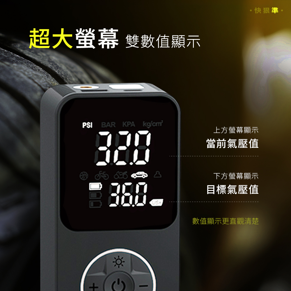 ●超大螢幕,可同時顯示當前氣壓值與目標氣壓值