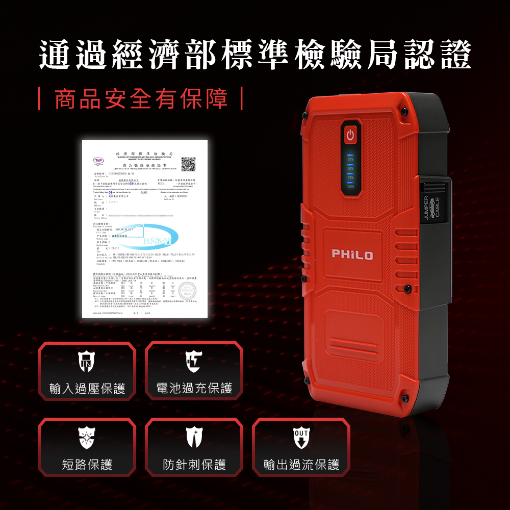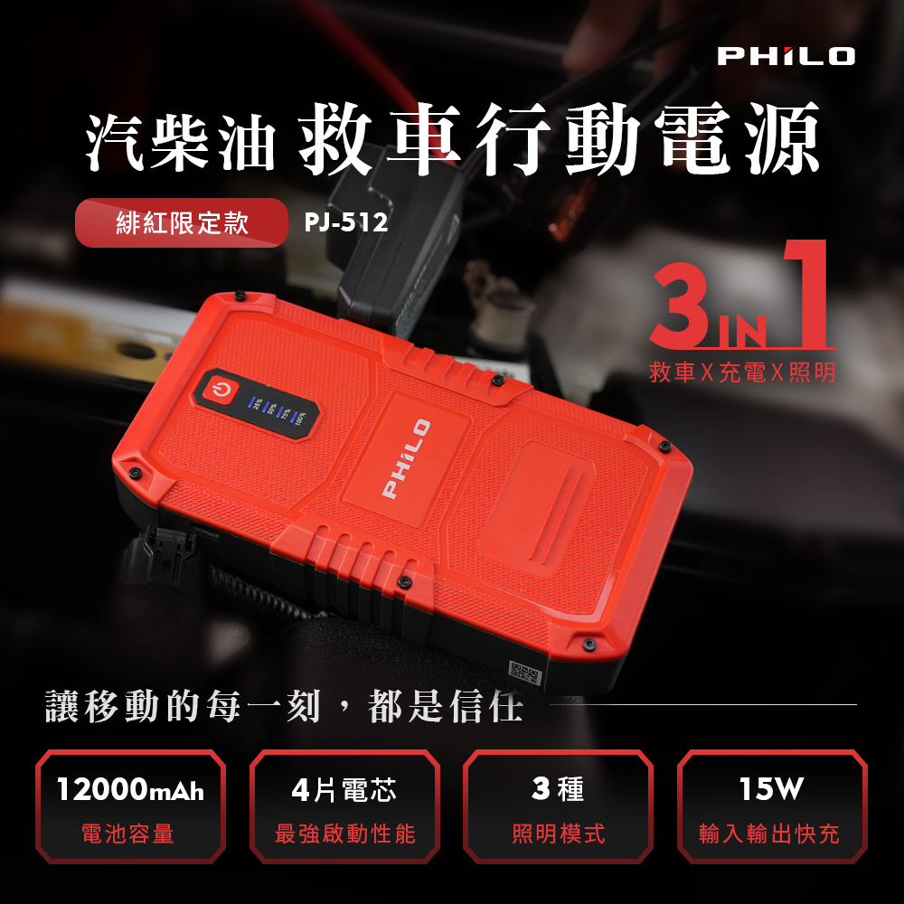 【Philo飛樂】汽柴油緋紅限定款 救車行動電源 PJ-512 12000mAH大容量 台灣現貨 官方原廠直送