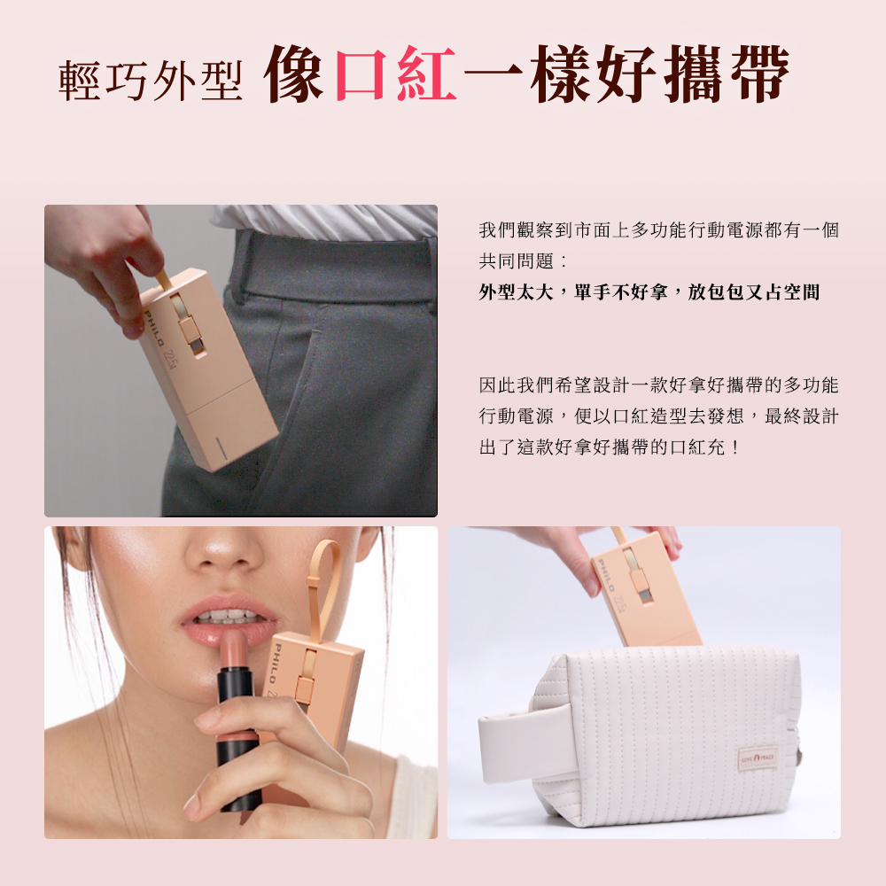 ● 口紅型行動電源,輕巧好攜帶,多功能一機搞定